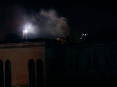 The National Theater in Downtown Cairo is on fire, as I’m writing now… Nile News is reporting the fire has broken out in the main hall shortly before iftar. There are ten fire trucks, according to the channel, present in the scene trying to control the situation and prevent the spread of fire.HOSSAM ELHAMALAWY